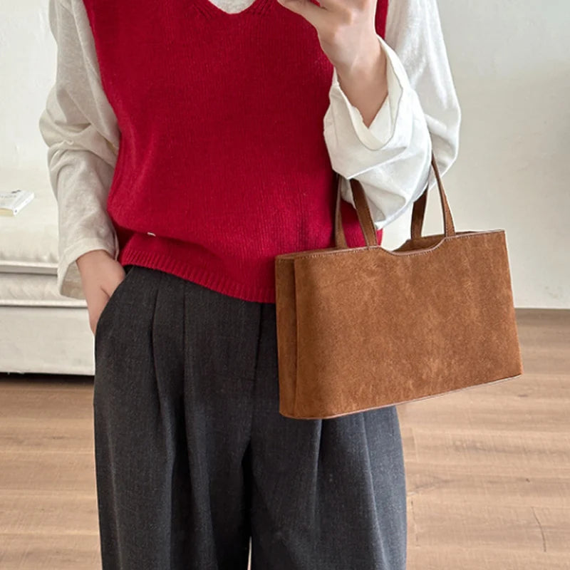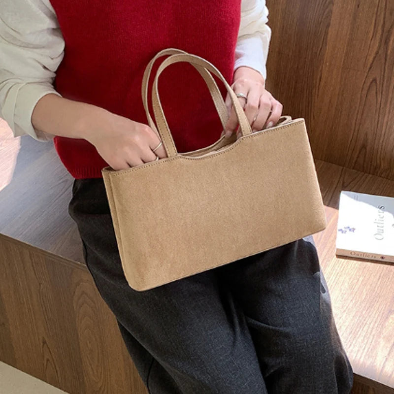 Sable Suede Carry: Composed charm. Vintage edge. Designed for the rhythm of real life. This merges sculptural shape with suede softness in a design that honors quiet confidence. Crafted from structured vegan suede with a matte, tactile finish, it features a signature box silhouette and clean lines made for the modern woman who values both form and function.