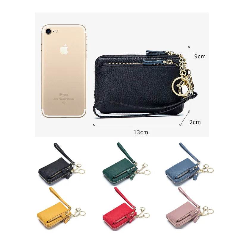 Includes three interior card slots, a central compartment, a side zipper pocket for coins, and an additional back zip pocket for added flexibility.